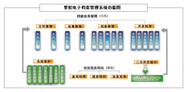 如上图所示,系统功能根据使用者的不同分为以下三个部分: · 针对普通用户的部分:针对普通用户的部分主要包括上述模块中的:消息平台和网站,主要提供档案的信息服务,例如:检索查询、浏览、下载、网上借阅等功能。为方便用户使用,本部份以B/S的方式实现,提高了使用方便性和系统的易维护性。 · 针对档案管理员的部分:针对档案管理员的部分主要包括上述模块中的:文件管理、收集整编、档案管理、开发利用和日常工作五个模块,主要提供档案管理员和部门的兼职档案员对归档文件的录入、收集和整理,同时提供档案管理人员对电子档案的管理、档案实体的辅助管理和对档案信息的开发利用。本部分以C/S方式实现,功能方便实用、简单快捷。 · 针对系统维护人员的部分:针对系统维护人员的部分主要指系统维护,是提供系统维护人员(可以是信息人员、也可以是档案人员)对整个系统进行定制和维护的工具包。系统维护主要提供了以下工具:系统权限的定制、档案管理架构的定制、档案整理规则的定制和对数据及用户使用的维护和设置工具。本部份只能提供对系统和档案业务熟悉的管理员使用,用于针对本单位情况建立档案管理系统的架构、对系统进行日常的维护和备份以及可以针对今后的发展和变化进行适应性修改。本部分以C/S方式实现,功能强大,并可扩充。 增强版保留了标准版产品中的所有特点,在此基础上主要做了以下改进,具有如下特点: · 使用简单方便,完全按照档案管理的业务组织功能模块,并且使用十分方便快捷,普通用户一看界面就知道怎样使用; · 增加了文件管理子系统,可以对归档前的文件进行管理,这样不仅提供了各归档部门对自身文件的管理手段,而且实现了文档的一体化; · 用户的界面风格有很大变化,在一个界面下面实现了所有功能,而不需要切换不同的模块和界面;同时数据的展现形式更加形象直观,为资源管理器风格,用户对档案数据的结构和操作一目了然; · 可以实现分散整理、集中整理和混合模式的归档文件整理流程,更加灵活和适应未来的变化; · 针对大型集团企业,可以实现集中存储、集中应用的多全宗集中式管理; · 档案数据的存储更加安全可靠,可以选择存在数据中,也可以以文件系统方式存储在文件服务器上; · 用户的机构和权限管理功能更加强大和灵活,同时又不失管理的方便性,增加了角色的概念,可以通过角色进行方便的赋权; · 应用和开发平台得到全面升级,新系统全面支持新的操作系统和数据库平台; · 数据库的结构设计、数据的存储和查询效率得到了更好的优化和提高; · 更加注重档案的收集整理和开发利用,可以根据规则实现自动整理,并为档案管理人员对档案信息的提炼提供了更好的工具; · 大量新技术的应用和集成: · 在线OCR技术· 全文检索技术· 数据交换技术· 流数据文件浏览技术· 和其它系统的接口技术 · 系统采用C/S和B/S混合结构,其中提供网上用户利用的部份采用B/S方式实现,这部份用户量大,采用B/S方式对用户的使用和系统的维护都提供了很大的方便;档案业务部份是通过C/S方式实现的,这部份采用C/S方式具有更强的安全性和使用方便灵活性,可以提供更强大的对数据操作的功能,主要针对档案部门的档案管理人员。 |
